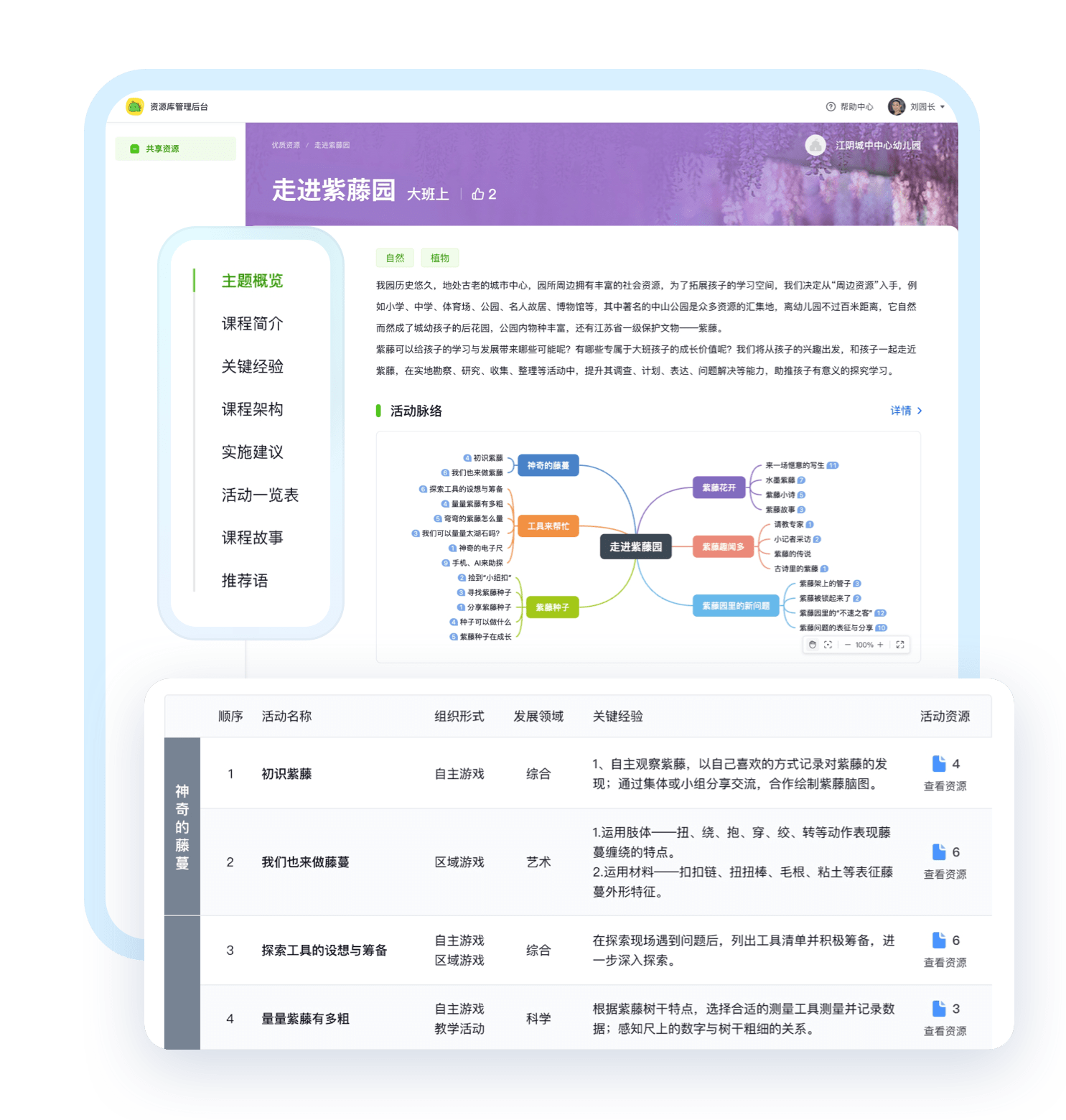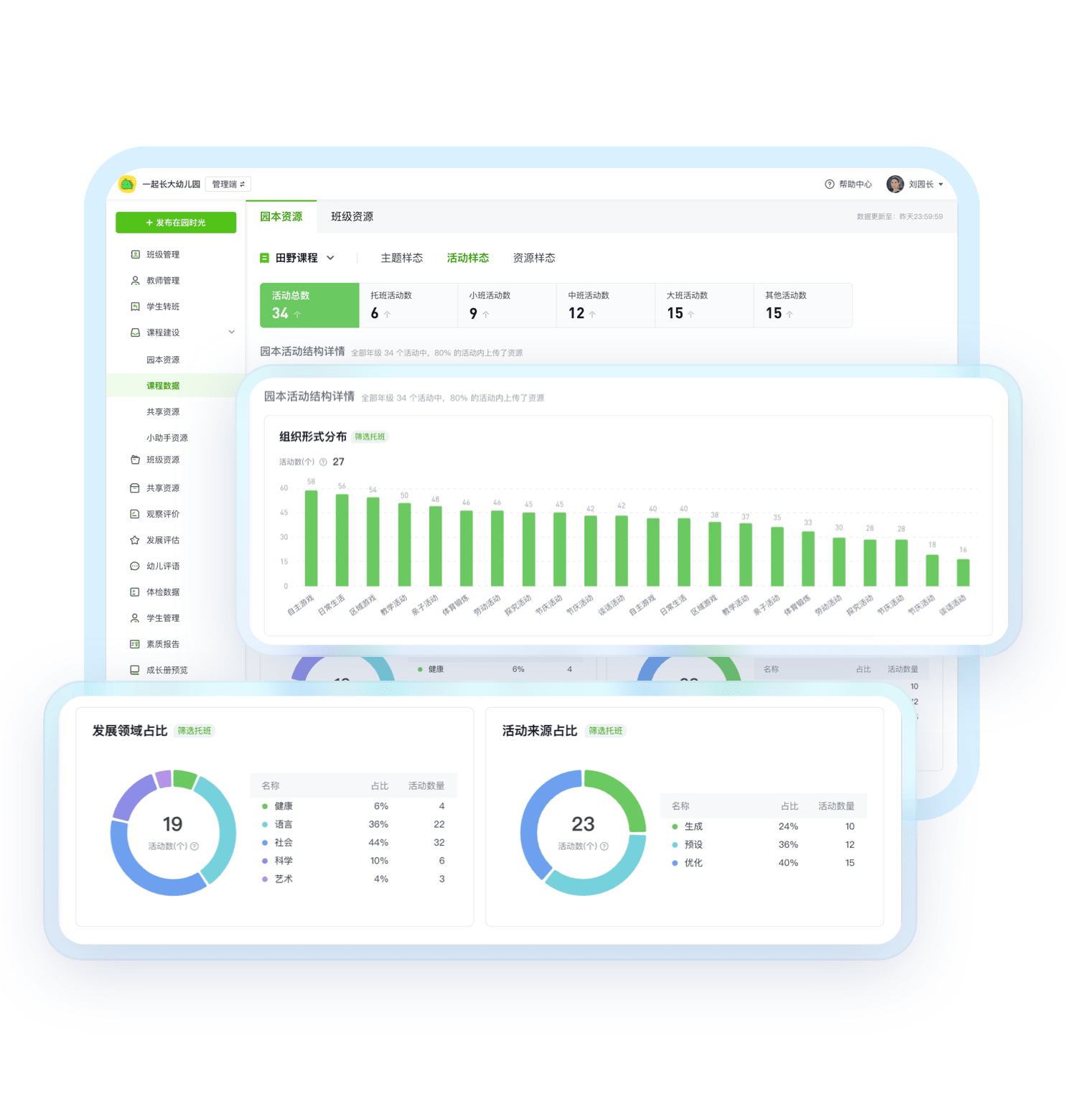 帮助园所形成园本课程资源动态管理机制,多维数据支持园所高质量发展。