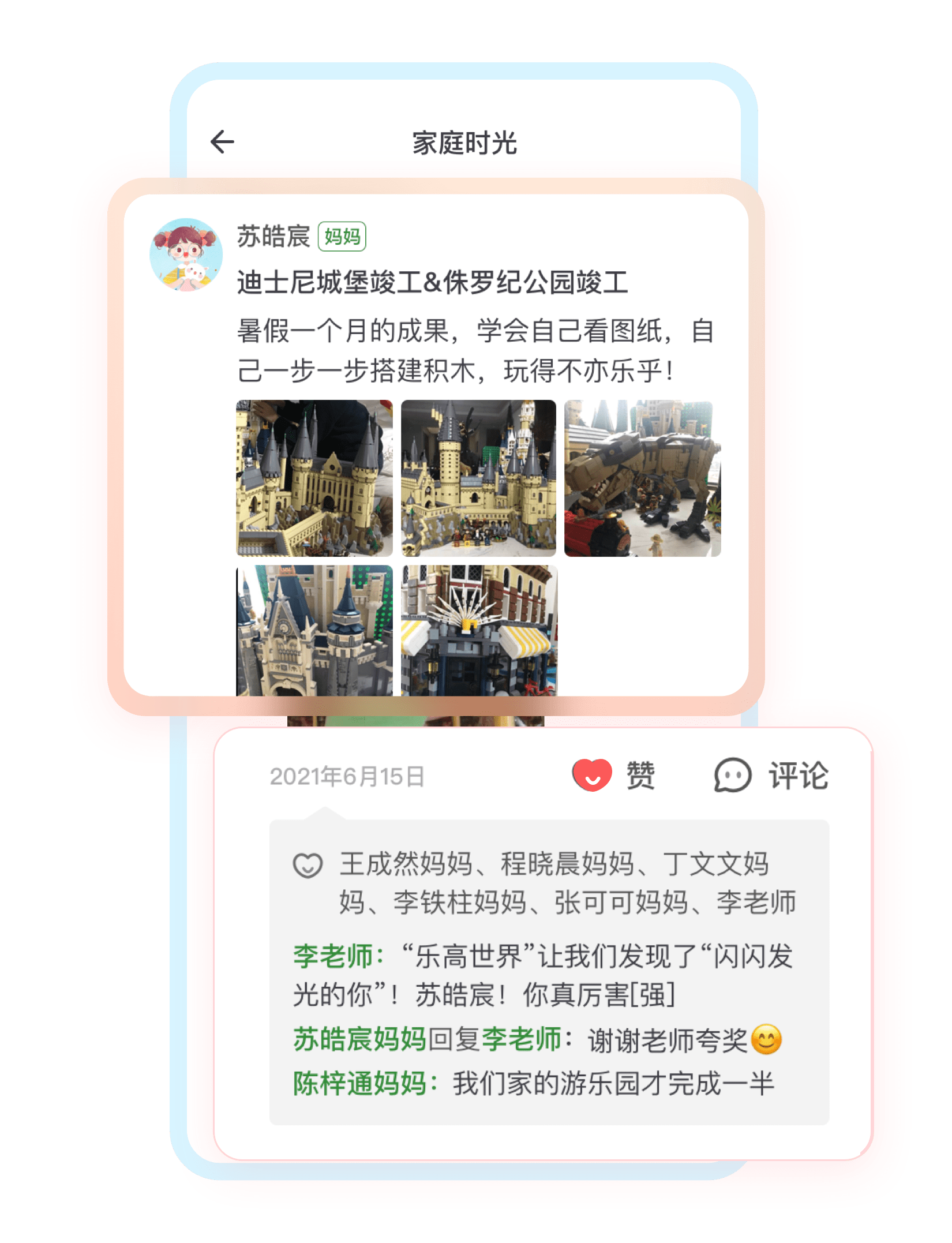 在“班级圈”内,分享孩子们的“哇”时刻,帮助老师了解孩子在家庭中的行为表现,促进家庭间的教育经验交流。