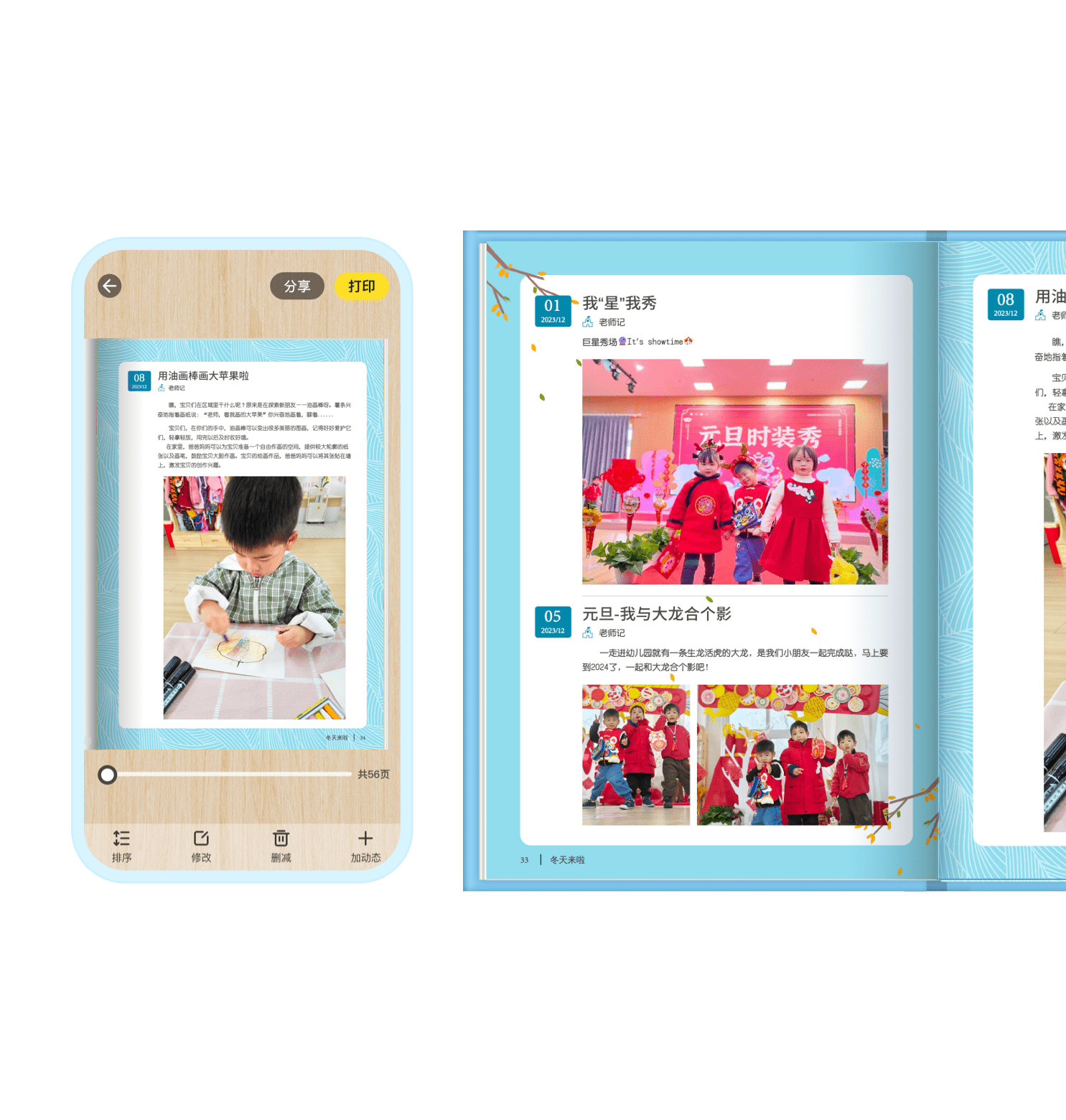 不同于简单的“照片书”,关于宝贝的观察记录、素质评价、评估报告等信息也会在成长册中展现。