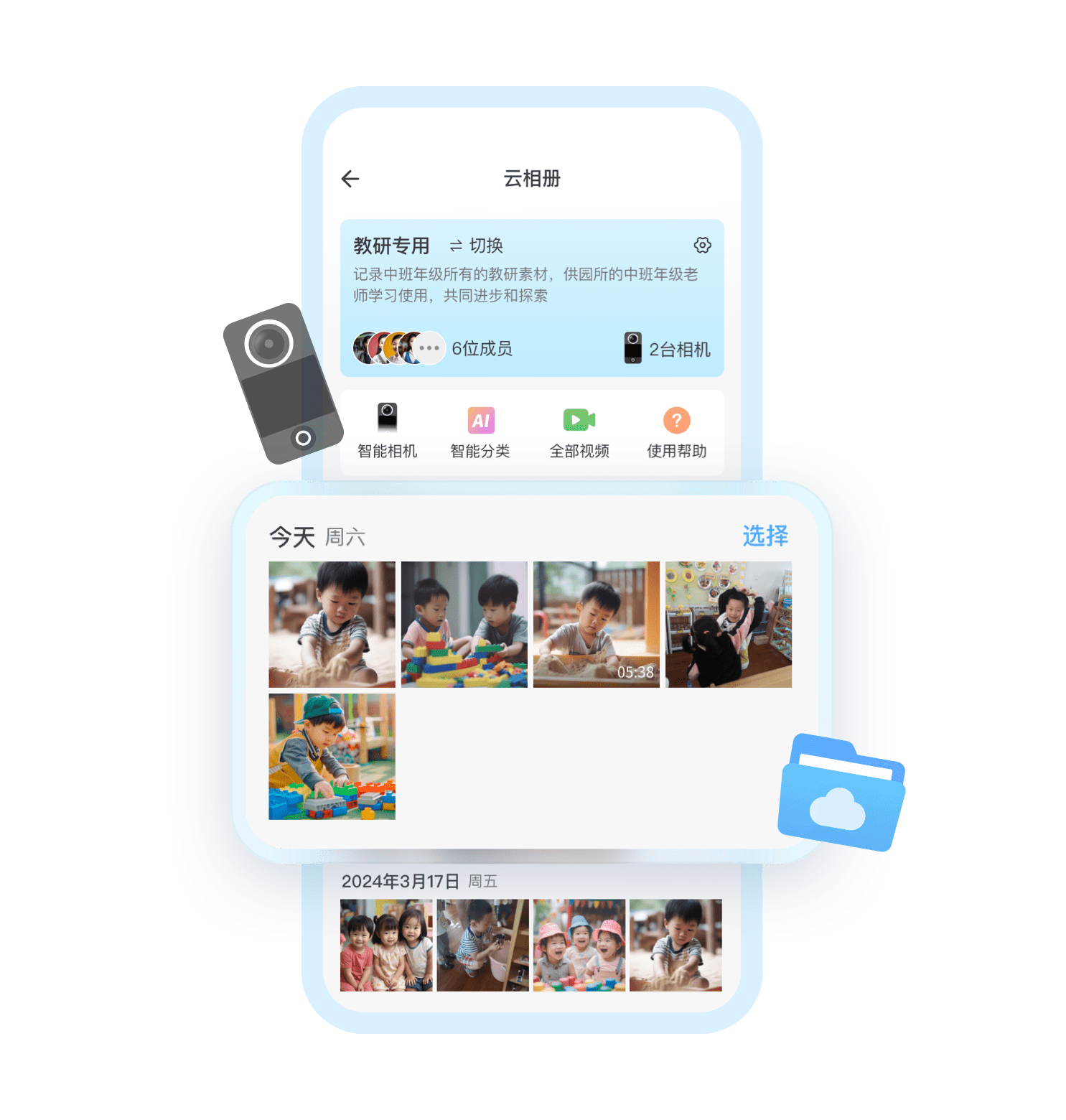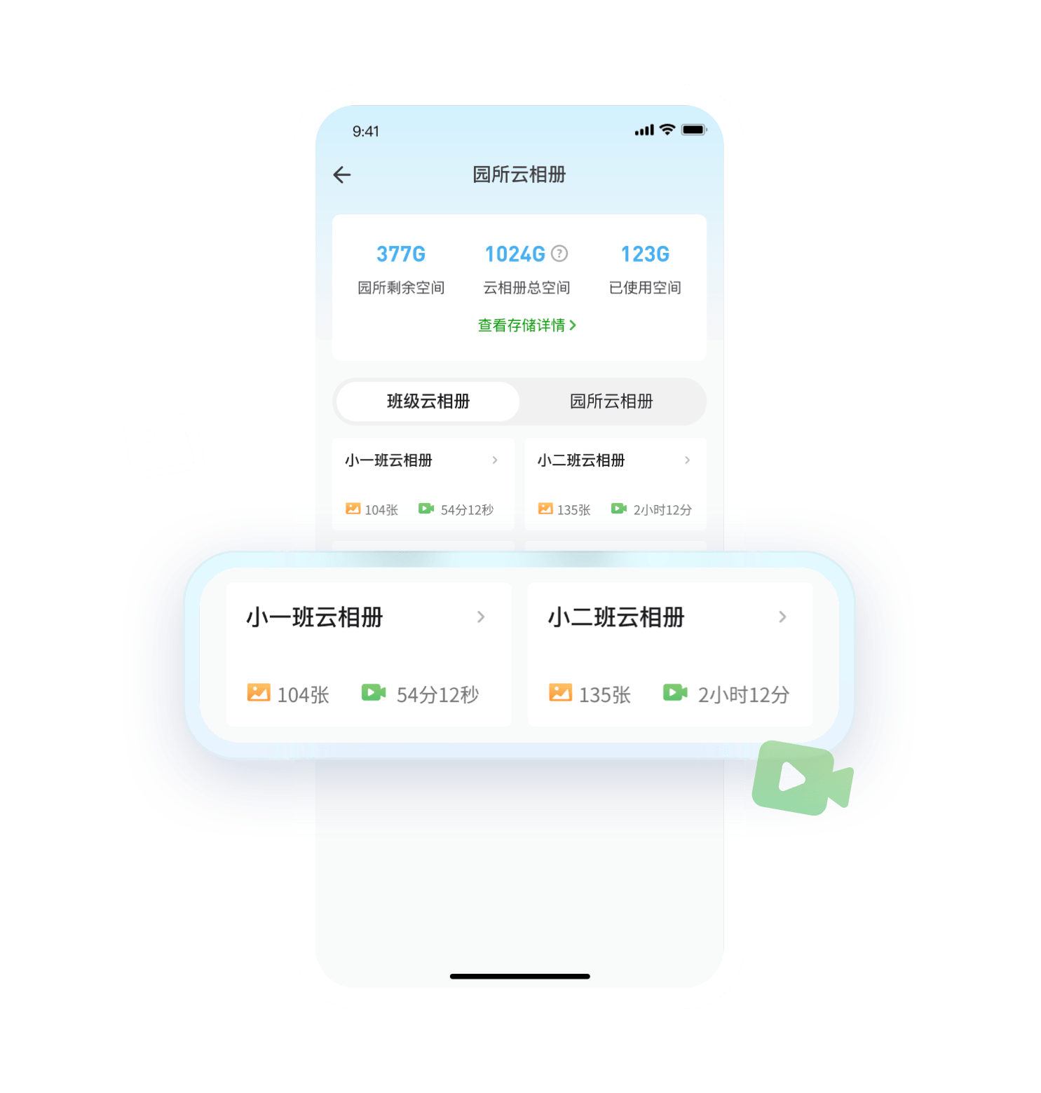 相册采用云端存储,内容自动上传云端,管理员可按需查看或检核各班情况,掌握各班级实时动态,有效提升管理效率。