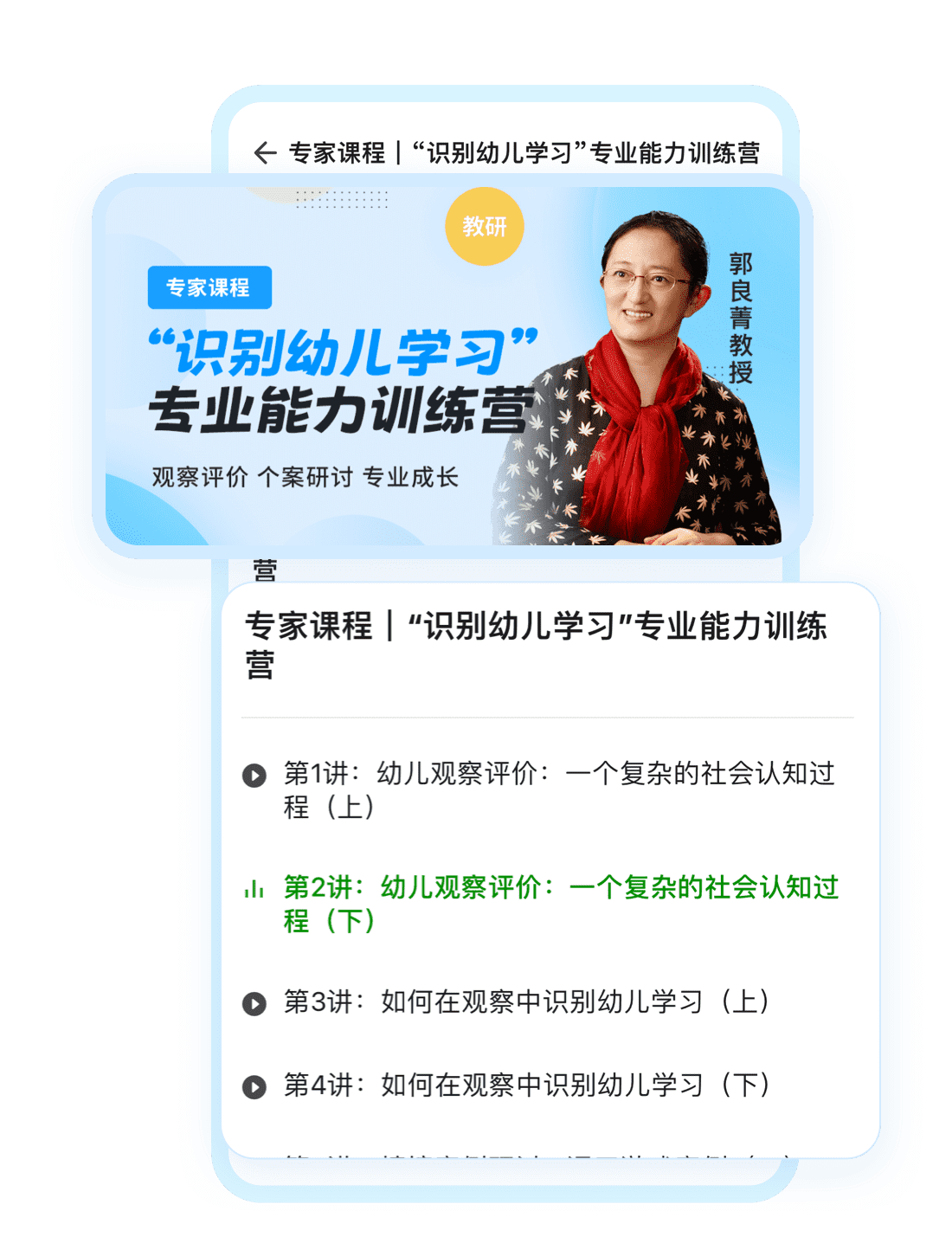 由郭良菁教授亲自带教的实操型课程,通过专题授课、案例研讨、现场观摩及社群交流等方式,不断磨炼学员辨别幼儿学习的敏感性与判断力。